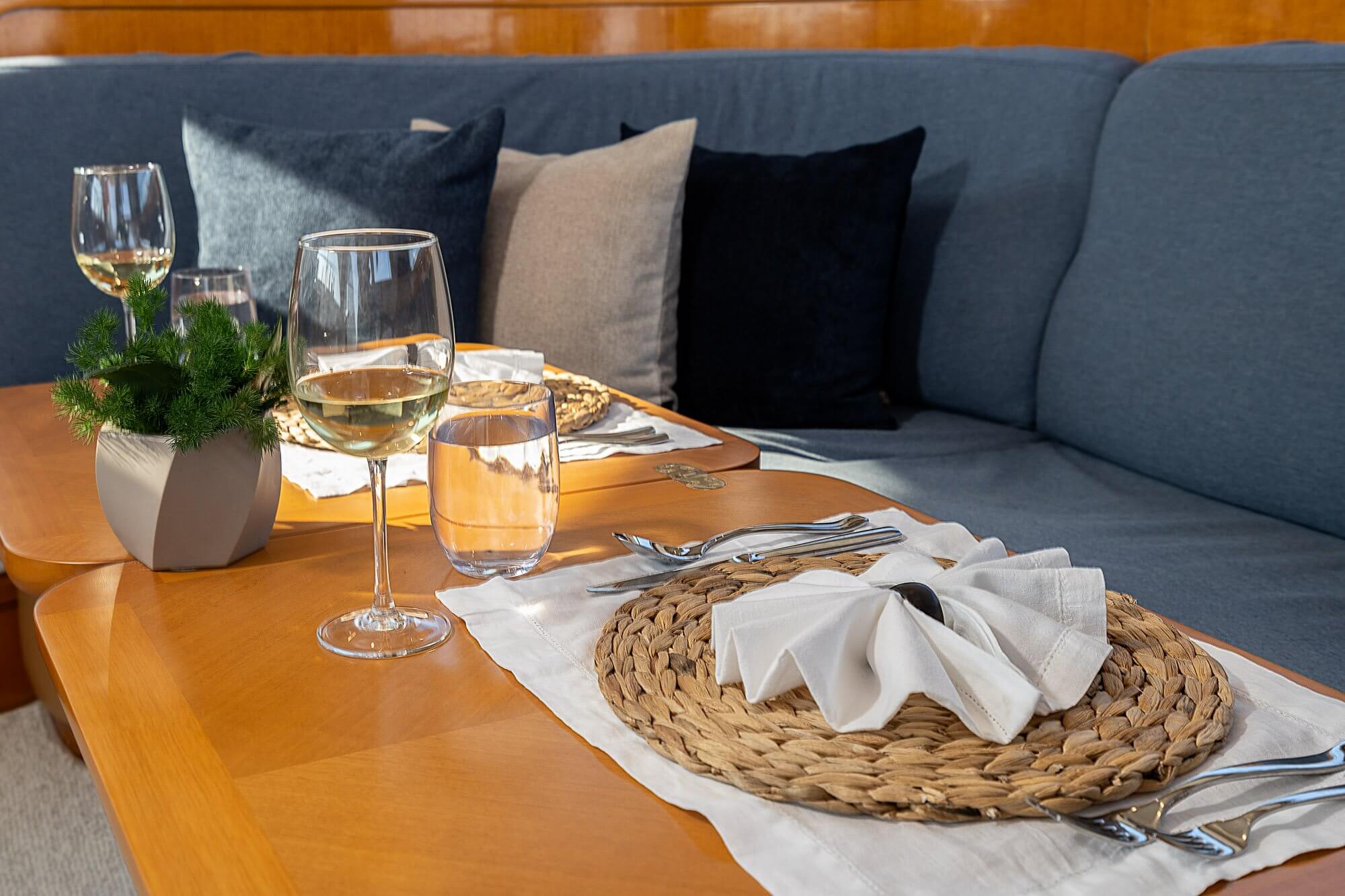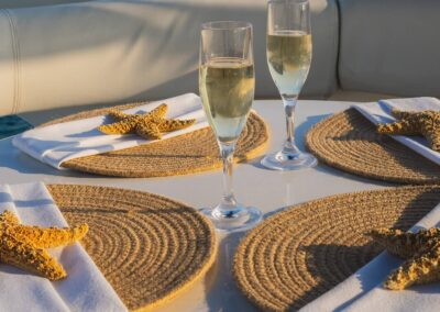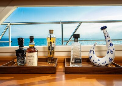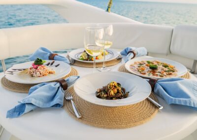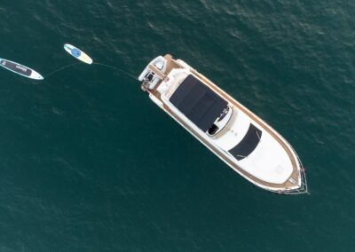 Immerse yourself in cinematic sound with the Bose surround system, and explore the surrounding beauty with our Dinghy. Enhance your adventure with our thoughtful amenities, including towels, sunscreen, and snorkeling gear. For the angler in you, we provide two fishing rods while paddle boards invite you to explore the pristine waters. Pamper yourself with L’Occitane amenities and cruise with confidence, equipped with life vests for your safety.